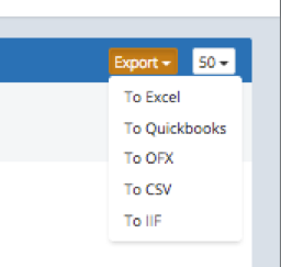 To do this, you click on the “Export” button and select the “To QuickBooks” Option: