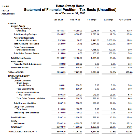 Sample financial reports because sometimes a picture is better than words ... for those who learn by seeing. These bookkeeping forms are a reference point for producing your own financial statements. This page is meant to be used as you work your way through the articles mentioned on this page. |